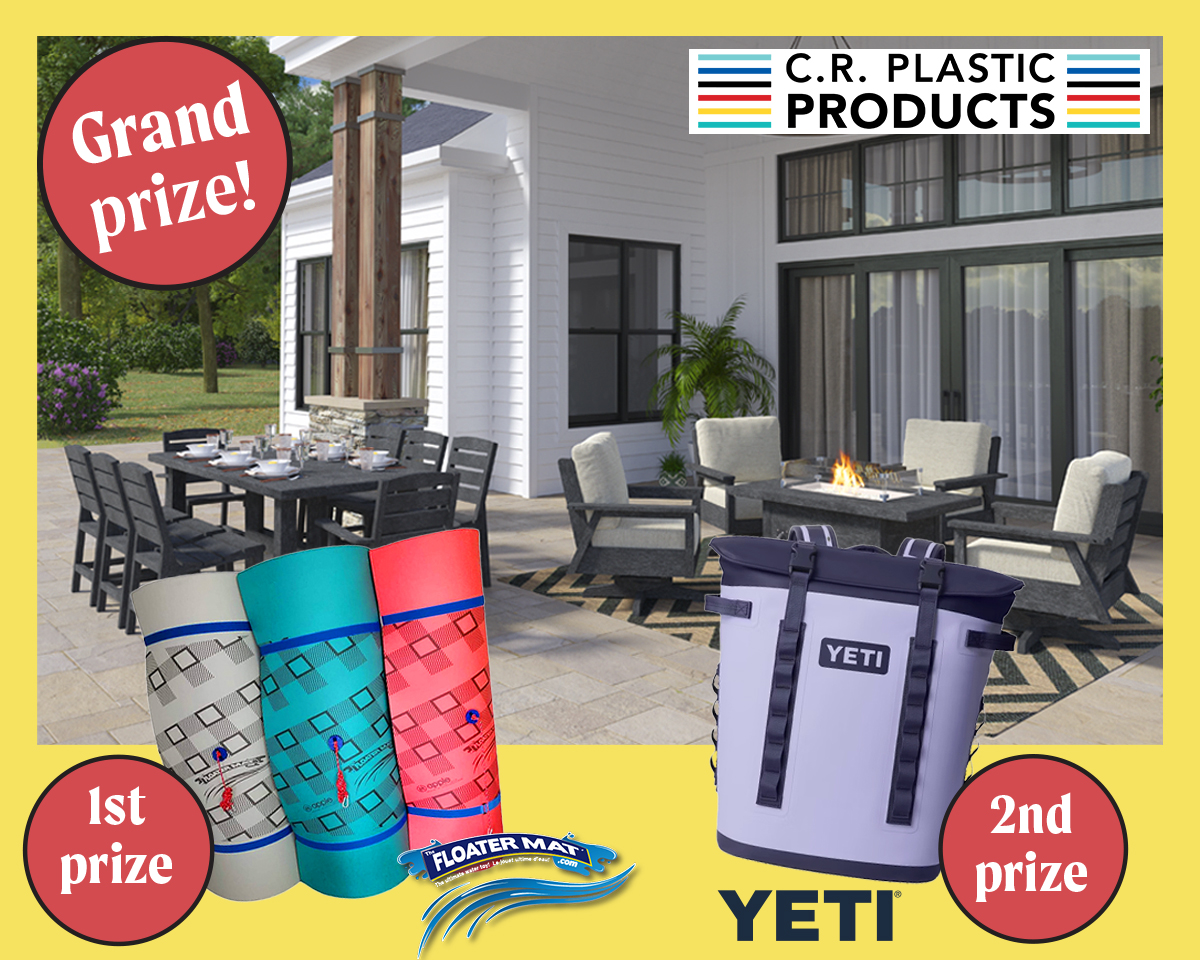 Grand Prize!$10,000 worth of luxury patio furniture from C.R. Plastic Products, including 4 Tofino Swivel Chairs, a 48" rectangular Fire Table, and a Napa Dining set (84" table plus 8 matching chairs). Available in a range of colours, to be chosen by the winner. Delivery included.